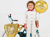 Glitzernder Folienballon Congrats! in Gold mit weißem Aufdruck, Durchmesser vor dem Aufblasen ca. 45 cm (18''), Durchmesser nach dem Aufblasen ca. 35 cm (14''). Zum Aufblasen mit Luft oder Helium.