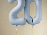 Matter Folienballon Ziffer 0 in nebelblau, Größe vor dem Aufblasen ca. 100 cm (39''), Größe nach dem Aufblasen ca. 86 cm (34''). Zum Aufblasen mit Luft und Helium. Das Set enthält einen Strohhalm. Der Ballon ist selbstversiegelnd. Er hat Haken zur einfachen Befestigung an Dekorationen.