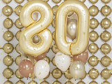 Satinierter Folienballon Ziffer 0 in gold, Größe vor dem Aufblasen ca. 100 cm (39''), Größe nach dem Aufblasen ca. 86 cm (34''). Zum Aufblasen mit Luft und Helium. Das Set enthält einen Strohhalm. Der Ballon ist selbstversiegelnd. Er hat Haken zur einfachen Befestigung an Dekorationen.