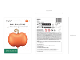 Folienballon Kürbis in Orange mit goldenem Stiel. Maße vor dem Aufblasen ca. 78 x 81 cm (30.7 x 31.9''), Maße nach dem Aufblasen ca. 62 x 59 cm (24.4 x 23.2''). Zum Aufblasen mit Luft und Helium. Das Set enthält einen Strohhalm.