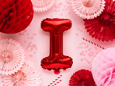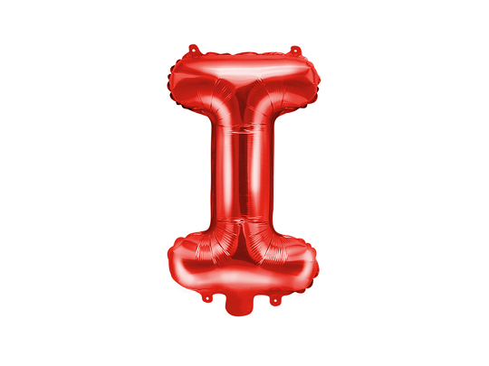 Roter metallisierter Folienballon Buchstabe ''I'', Höhe vor dem Aufblasen ca. 40 cm (16''), Höhe nach dem Aufblasen ca. 35 cm (14''). Zum Aufblasen mit Luft.