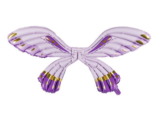 Ballon en foil en forme d'ailes de papillon, avec des cordes pour attacher au dos, couleur violet mat, dimensions env. 102 x 50 cm. À gonfler avec de l'air. Comprend une paille.