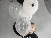 Ballons Strong Araignées avec impression, le kit contient 2 couleurs de ballons (Pastel Off-white et Crystal Clear) avec impression et des ballons unis de couleur Pastel Black, diamètre env. 30 cm.