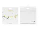 Genähter Banner Happy New Year aus spiegelgoldfarbenem Papier, ca. 66 cm lang, ca. 18 cm hoch.