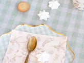 Nonwoven table runner Grid with a sage and beige print, approximately 40 cm wide and 5 m long.