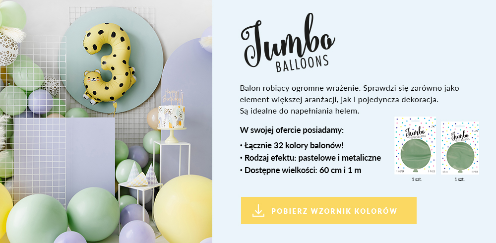 Balony olbrzymy są… olbrzymie! Ich rozmiary robią wrażenie i przykuwają wzrok wszystkich. Napełnione helem stanowią dekorację, której nie sposób przeoczyć, a dodanie ich do girland przyniesie… wielki efekt.