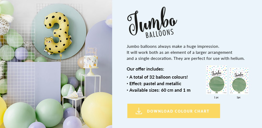 Giant balloons are... giant! Their sizes are impressive and catch everyone's eye. Filled with helium, they make a decoration that cannot be missed, and adding them to garlands will bring... a GIANT effect.