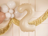 Pastell-Folienballon Ziffer 2 in beige, Größe vor dem Aufblasen ca. 86 cm (34''), Größe nach dem Aufblasen ca. 72 cm (28''). Kann mit Luft und Helium aufgeblasen werden. Das Set enthält einen Strohhalm. Der Ballon ist selbstversiegelnd. Mit Haken für einfache Dekoration.