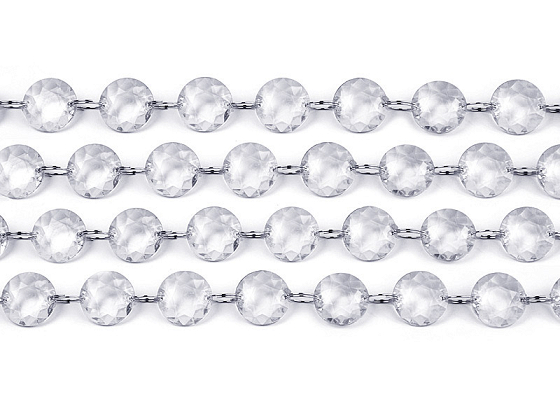 Kristallgirlande farblos, 1 Meter lang. Durchmesser der Kristallräder: kleine 18 Millimeter, große 30 Millimeter.