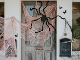Weißer Dekorationsstoff mit roten Blutflecken, Abmessungen ca. 0,72 x 9,8 m, für den Innen- und Außenbereich geeignet. Zusammensetzung: Polyester - 100%. Pflegehinweise: Handwäsche.