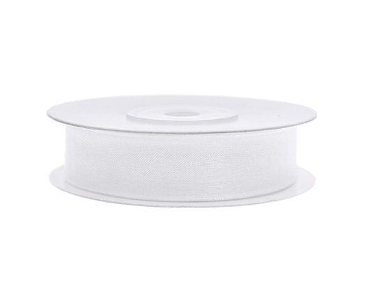 Chiffonband in Weiß, 12 Millimeter breit, 25 Meter lang.
