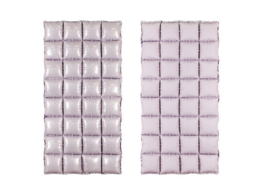 Rectangular foil balloon backdrop - double-sided, one side with a matte purple finish and the other with shiny purple. Dimensions before inflation are approximately 72 x 143 cm, and after inflation 55 x 110 cm. The set includes a straw.