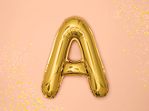 Metallic foil balloon Letter ''A'', gold, size before inflation approx. 40 cm (16''), height approx. 35 cm (14''). Inflate with air.
