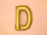Metallic foil balloon Letter ''D'', gold, size before inflation approx. 40 cm (16''), height approx. 35 cm (14''). Inflate with air.