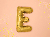 Metallic foil balloon Letter ''E'', gold, size before inflation approx. 40 cm (16''), height approx. 35 cm (14''). Inflate with air.