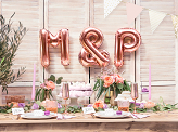Metallic foil balloon Letter ''M'', rose gold, size before inflation approx. 40 cm (16''), height approx. 35 cm (14''). Inflate with air.