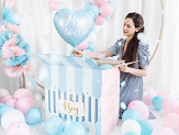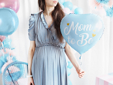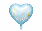 Glossy foil balloon in shape of heart in blue colour with gold metallic insription Mom to Be, diameter before inflation approx. 45 cm (18''), diameter approx. 35 cm (14''). Inflate with helium.