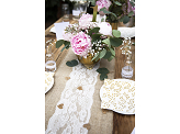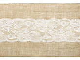 Jute table runner with lace, width approx. 28 cm, length approx. 2.75 m.