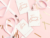 Team Bride badge, approx. 8,7x12,5 cm. The set contains 4 badges, each consisting of a tag with a title and a lanyard.