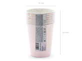 Paper cups in light powder pink colour with holographic inscription Happy B'day!, hold up to approx. 220 ml (7.4 oz). Beverage cups bear the printed marking required by Commission Implementing Regulation (EU) 2020/2151 of 17 December 2020 laying down rules on harmonised marking specifications on single-use plastic products listed in Part D of the Annex to Directive (EU) 2019/904 of the European Parliament and of the Council on the reduction of the impact of certain plastic products on the environment. The product is labelled only in Polish, Spanish, Latvian, Estonian, Portuguese, Hungarian, Greek, Croatian and Romanian.