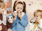 Paper cups Dogs, packaged in sets of 3 featuring a brown and white dog with black dots, capacity approximately 220 ml (7.4 oz). Single-use product. Do not use for hot beverages. Beverage cups bear the printed marking required by Commission Implementing Regulation (EU) 2020/2151 of 17 December 2020 laying down rules on harmonised marking specifications on single-use plastic products listed in Part D of the Annex to Directive (EU) 2019/904 of the European Parliament and of the Council on the reduction of the impact of certain plastic products on the environment. The product is labelled only in Polish, German, Czech, French, Dutch, Slovak, Slovenian, and Bulgarian.