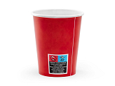 Paper cups Pirates Party in red colour with white print, hold up to 220 ml (7.4 oz). Beverage cups bear the printed marking required by Commission Implementing Regulation (EU) 2020/2151 of 17 December 2020 laying down rules on harmonised marking specifications on single-use plastic products listed in Part D of the Annex to Directive (EU) 2019/904 of the European Parliament and of the Council on the reduction of the impact of certain plastic products on the environment. The product is labelled only in Polish, German, Czech, French, Dutch, Slovak, Slovenian and Bulgarian.