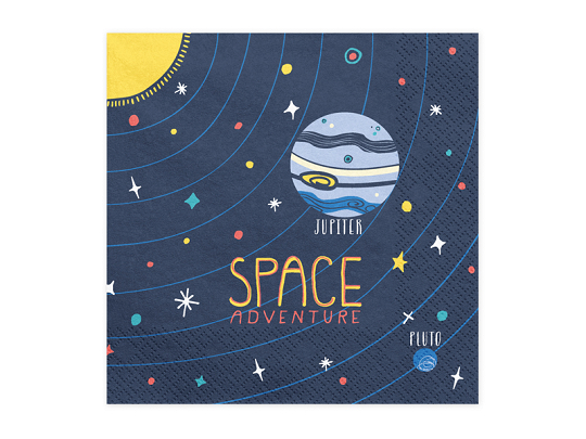 Paper napkins Space Party, navy blue with a print, size after unfolding approx. 33 x 33 cm, size after assembling approx. 16.5 x 16.5 cm.