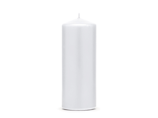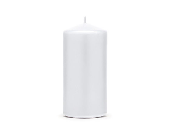 Pillar candle, matt, white, height 15 centimeters, diameter 6 centimeters. Burn time of 1 piece approx. 30 hours.