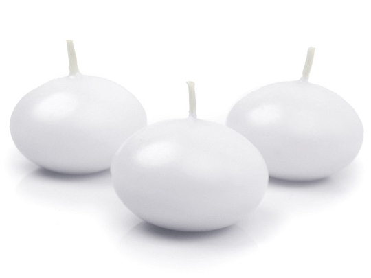Floating candle disc, matt, white, size 5 centimeters. Burn time of 1 piece approx. 3 hours.