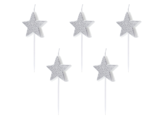 Birthday candles Stars in silver glittery colour, height approx. 3.5 cm.