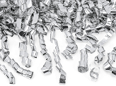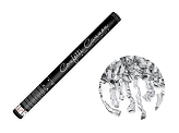Confetti cannon shooting out long silver metallic streamers, length 60 cm.