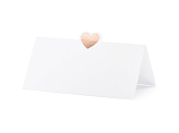 Place cards made of white paper with rose gold metallic heart, size after assembling approx. 10 x 5 cm.