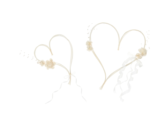 Coeurs en rotin avecavec davec des bouquets séchés en crème et des ventouses. L'ensemble contient des cœurs de tailles différentes : 19 centimètres et 30 centimètres.
