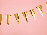 Bunting, mirror gold, do it yourself, set contains 14 flags and approx. 3 m of gold twine, sizes after assembling: height approx. 13 cm, length approx. 2.15 m.