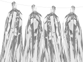 Quastengirlande, zum Falten, Der Set enthält 12 silberne Spiegelquasten und ca. 2 m weiße Kordel, Abmessungen nach dem Falten: Höhe ca. 30 cm, Länge ca. 1, 5 m.