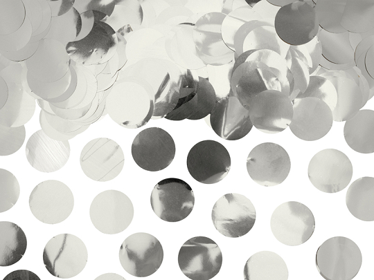 Konfetti Kółka, wykonane z folii w kolorze srebrnym, średnica ok. 2,5cm, 15g