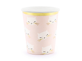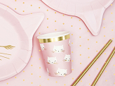 Paper cups Cat, light pink, hold up to 200 ml (7 oz.). Beverage cups bear the printed marking required by Commission Implementing Regulation (EU) 2020/2151 of 17 December 2020 laying down rules on harmonised marking specifications on single-use plastic products listed in Part D of the Annex to Directive (EU) 2019/904 of the European Parliament and of the Council on the reduction of the impact of certain plastic products on the environment. The product is labelled only in Polish, German, Czech, French, Dutch, Slovak, Slovenian and Bulgarian.