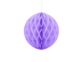 Kula bibułowa w kolorze liliowym o średnicy ok. 20 cm. Produkt wielokrotnego użytku. Montaż przy pomocy spinacza.