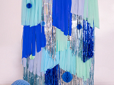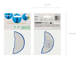Kula bibułowa w kolorze niebieskim o średnicy około 20 centymetrów. Produkt wielokrotnego użytku. Montaż przy pomocy spinacza.