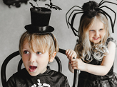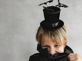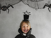 Bandeau d'Halloween avec un Cylindre Noir et des Chauves-Souris. Dimensions d'environ 19 x 26 cm.