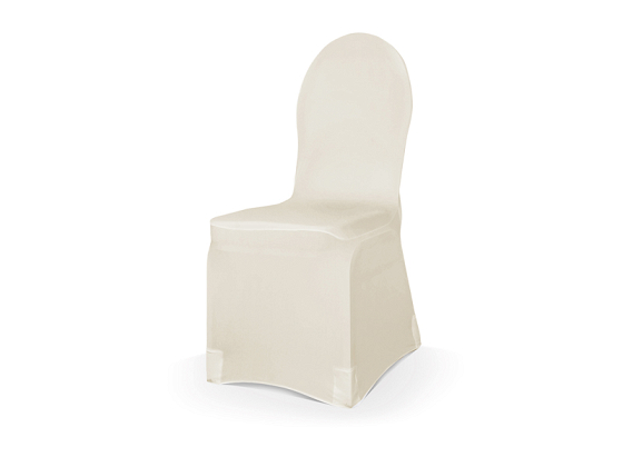 Pokrowiec z elastycznej matowej tkaniny w kolorze kremowym, grubość 200g. Pasuje na każde krzesło z okrągłym oparciem.