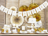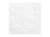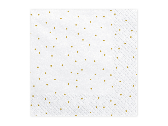 Serviettes 3 couches Pois, en blanc avec impression dorée, dimensions 33 x 33 cm.