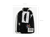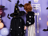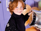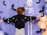 Strój - skrzydła nietoperza w kolorze czarnym ze srebrnymi elementami. Przeznaczony dla dzieci w wieku 3 - 7 lat.