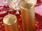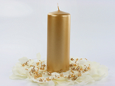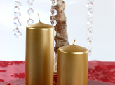 Bougie club métallisée or, hauteur 15 centimètres, diamètre 6 centimètres. La durée de combustion d'une pièce est d'environ 30 heures.