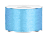 Ruban de satin de couleur bleue, largeur 38 millimètres, longueur 25 mètres.