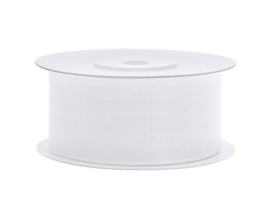 Ruban de mousseline de soie blanche, largeur 25 millimètres, longueur 25 mètres.
