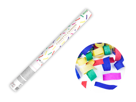 Die Konfettikanone schießt buntes Papierkonfetti, 60 Zentimeter lang.