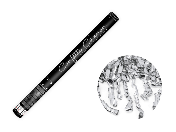 Konfettikanone mit Luftschlangen, silber, 40cm